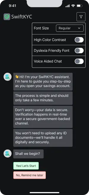 SwiftKYC reimagines the registration process for banks by using conversational design and AI validation. The goal: reduce drop-offs, catch errors early, and make compliance less intimidating for users while giving agents tools that save time.