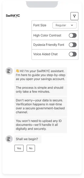 Kept advanced steps (like liveness checks or document authenticity) running in the background, surfacing them only when necessary to avoid cognitive overload.